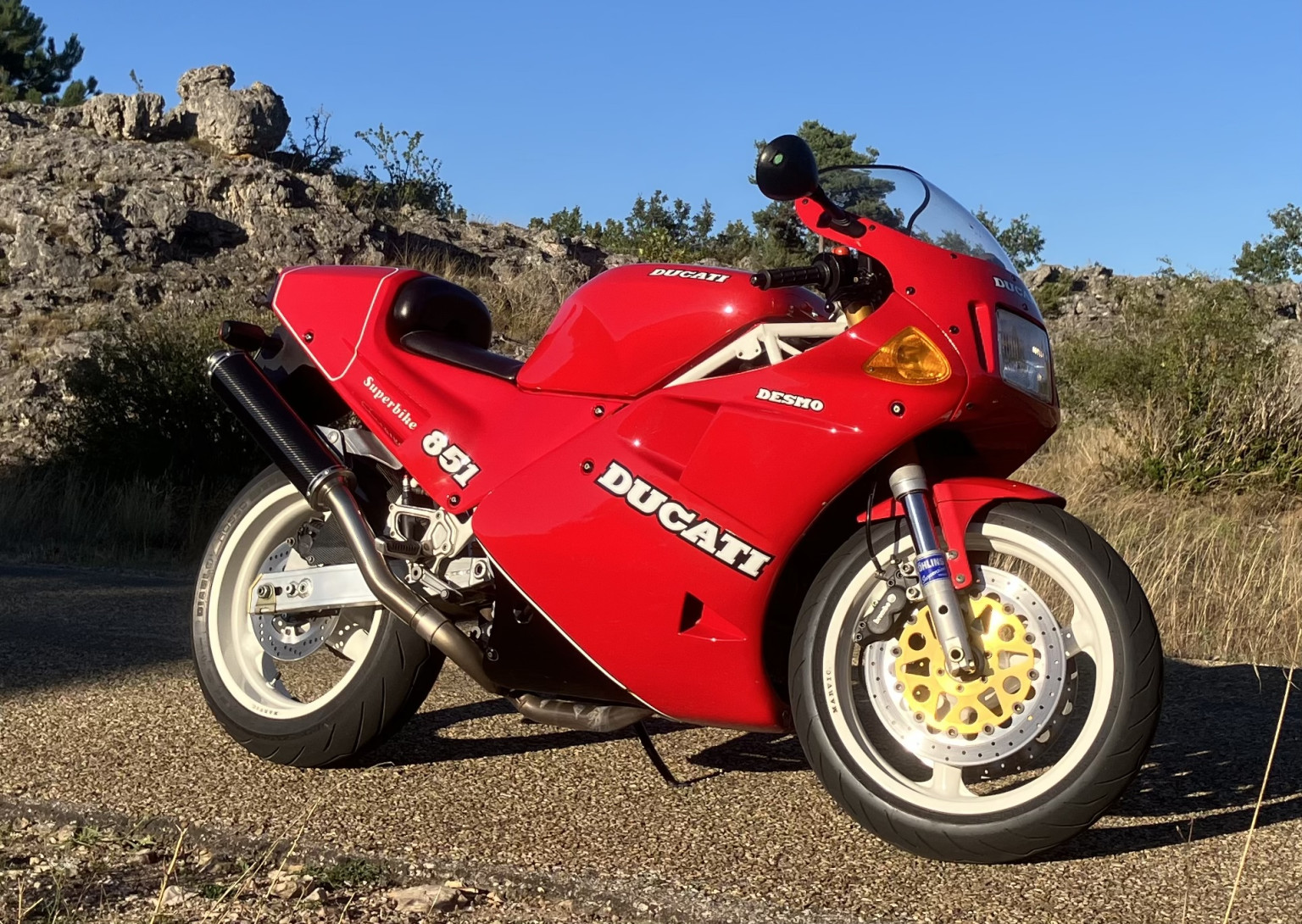 While cleaning and inspecting, you often find things that start to deteriorate, get wobbly, etc. Here, the rear shock carbon heat shield was getting lose due to aging heat resistant washers. Replacement in progress. Preemptive maintenance allows to avoid losing or braking things.